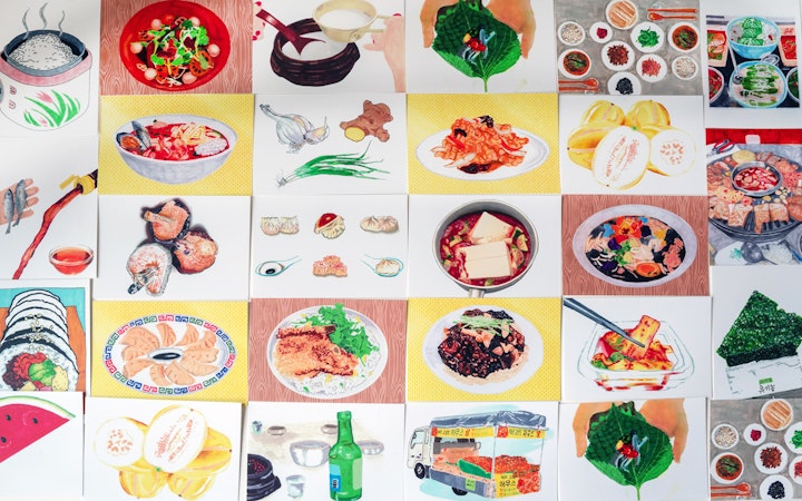 “I started drawing Korean food a few years ago for fun with my husband. Both of us love to eat and cook, and we find that illustrating our favorite meals and ingredients is a great way to remember them. As a Korean American who grew up misguidedly trying to assimilate, I’m grateful that I got a chance to reconnect with my heritage when I moved to Seoul in 2007. The years I spent in Korea became the foundation of my love for Korean food. Now, back in the States, I draw to keep my connection to my ancestral homeland alive.”