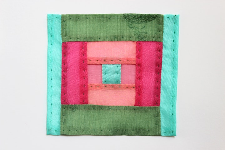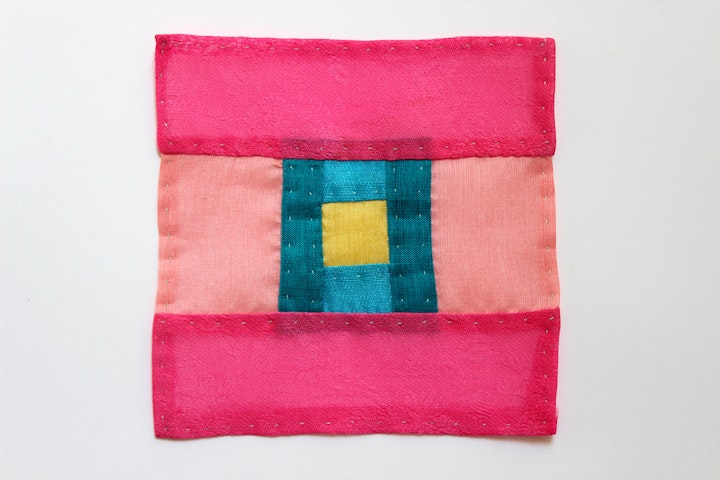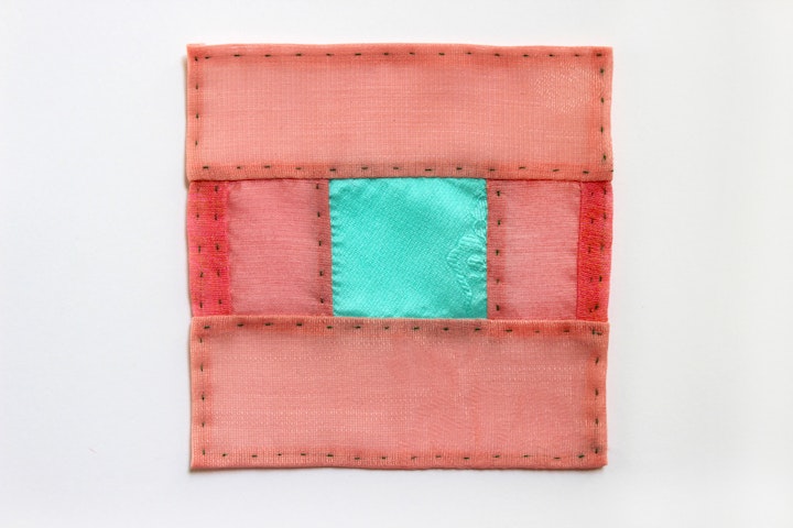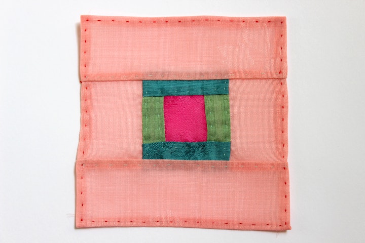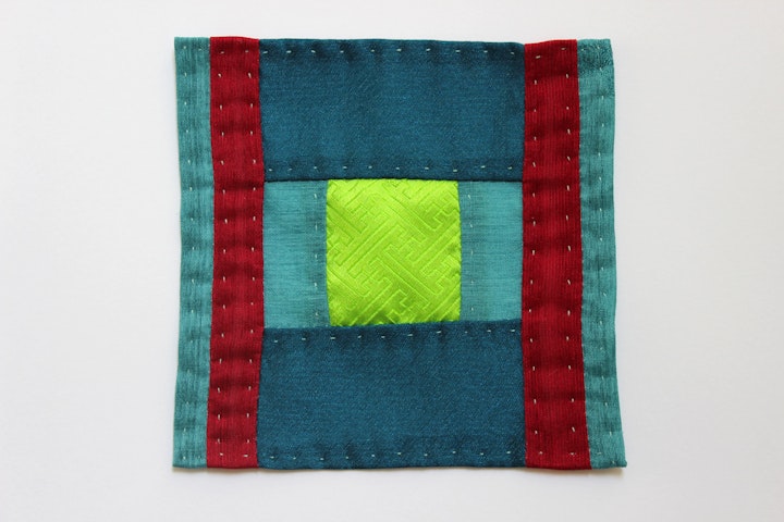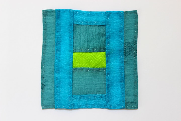 4 x 4” Korean silk patchwork, sewn in the format of bojagi; variable edition of 10